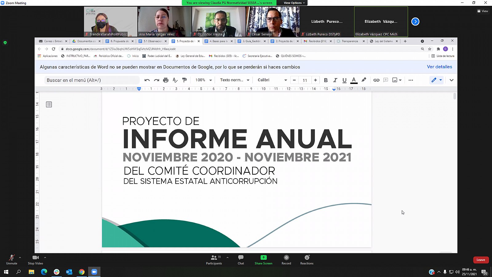 Cuarta Sesión Extraordinaria de Comisión Ejecutiva de la SESEA (25/11/2021)