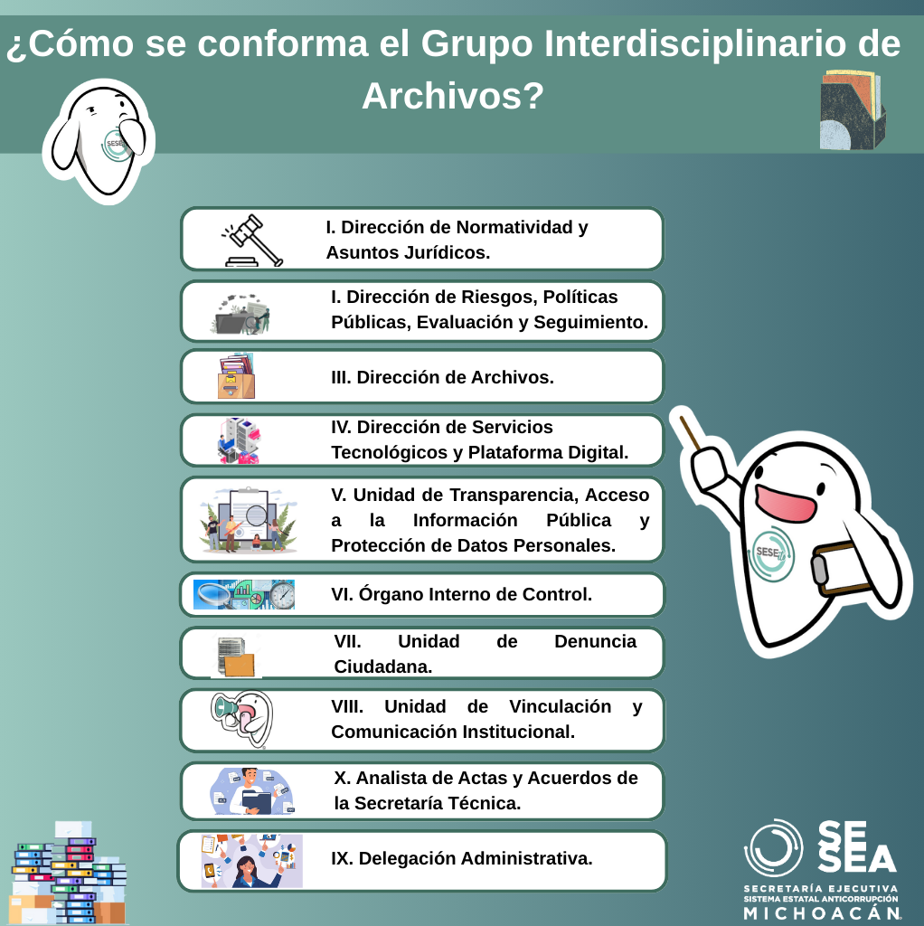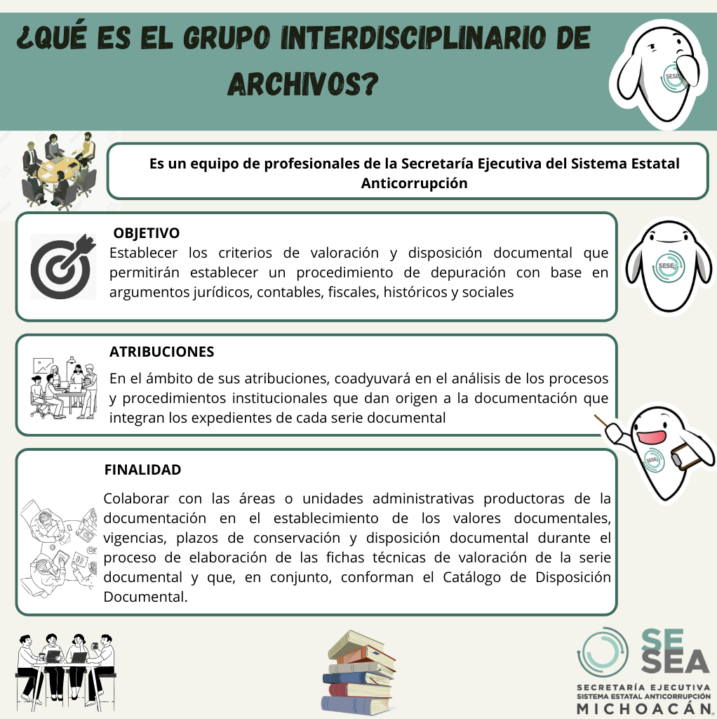 Formato e Instrumento De Llenado Del Inventario De Archivos De Trámite Ver documento Cuadro General de Clasificación Archivística y Catálogo de Disposición Documental Ver documento Programa Anual de Desarrollo Archivístico Ver documento Guía de Archivo Documental Dirección de Archivo SESEA 2025 Ver documento Constancia de Refrendo al Registro Nacional de Archivos Ver documento Reglas de Operación del Grupo Interdisciplinario de Archivos de la Secretaría Ejecutiva del Sistema Estatal Anticorrupción de Michoacán Ver documento -